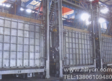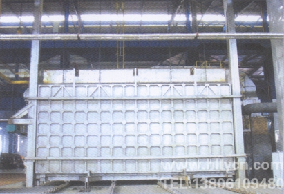 臺車式退火爐鋼 結構主要包括爐殼支撐框架和驅動設備支撐框架(平臺鋼結構)。考慮到爐殼潛在的熱脹冷縮因素,各段爐殼支撐框架與平臺鋼結構采川相互獨立結構。各爐段的底 輥室先安裝就位,以自己四角立柱為基準完成4個..